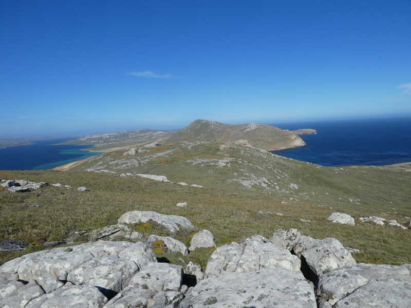 We tried to walk up Mt Usborne, the highest hill in the Falklands. But after slogging up the slopes through the ankle-grabbing white grass, and knee-turning stone runs, the weather closed in and cloud shrouded the summit. So, so we trundled down the hill again. Better safe, than having to call out air-sea rescue teams.